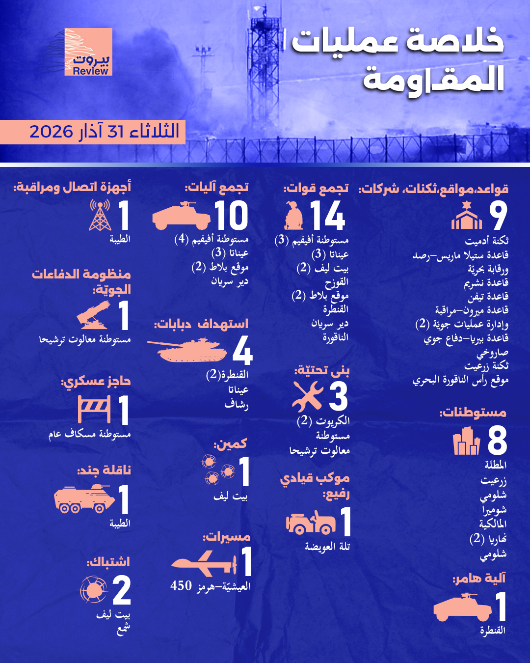 خلاصة عمليات المقاومة "الثلاثاء 31 آذار 2026"