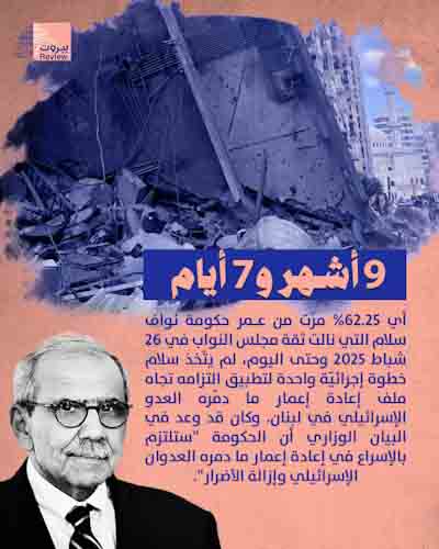 9 أشهر و 7 أيام مرّت على ولادة حكومة نوّاف سلام، ووعوده لا تزال حبرًا على ورق. فبيان الحكومة الوزاري الذي ألزمها “بالإسراع في إعادة إعمار ما دمره العدوان الإسرائيلي وإزالة الأضرار” بقي حتى الآن بلا تنفيذ، بل حتى دون بوادر للبدء بالخطوات الأولى باتجاه الإعمار.